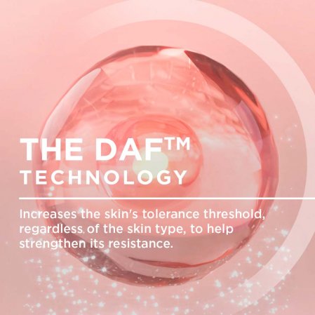 A biological breakthrough for sensitive skin, the Toléridine™ patent, boosted by the D.A.F. (Dermatological Advanced Formulation) patented natural complex, inhibits the production of pro-inflammatory molecules and thus makes the skin less reactive.